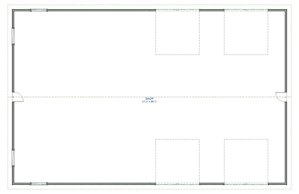 - Overhead Door Openings: 4ea 14×14 (by others)
