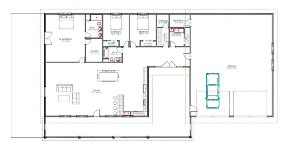 • Full set of plans (layout, floor plan, elevations, section, energy conservation, w/d takeoff, roof/truss plans, floor system design, 3d view, anchor layout)