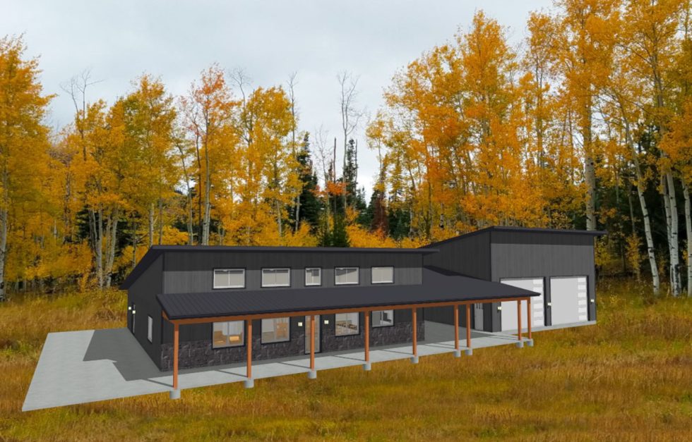 A modern look to your new barndo! With a 2,000sqft shop and just over 3,000sqft of living space, this 3bd/2ba has an open layout. It’s finished with an Antique Barnwood metal board & batten, black rock wainscot on the front and a black roof. To top it off, it includes exterior continuous insulation to get the most R-value out of your home! With this sleek design and finishes, you’re sure to have an outstanding barndominium.